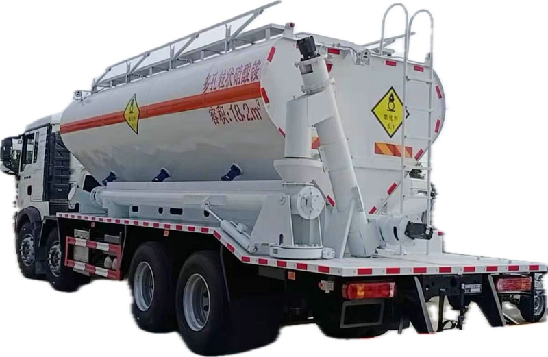 The main container of the truck has two multifunctional tanks, which allow transporting emulsion UN 3375 or ammonium nitrate UN 1942.