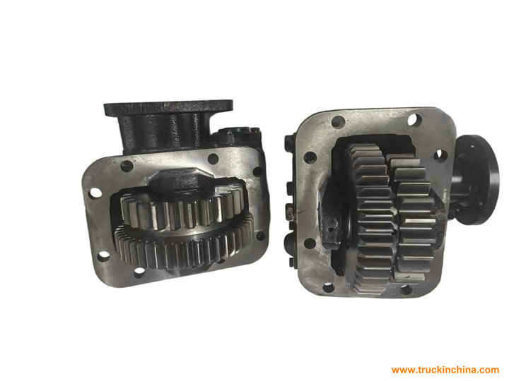 A Power Take-Off (PTO) is a mechanical gear device mounted on the gearbox, which transfers engine power from the transmission to on-board auxiliary equipment (such as hydraulic pumps, air compressors, mixer drums, cranes, etc.). It is a core component for special-purpose vehicles (e.g., concrete mixers, sanitation trucks, crane trucks).